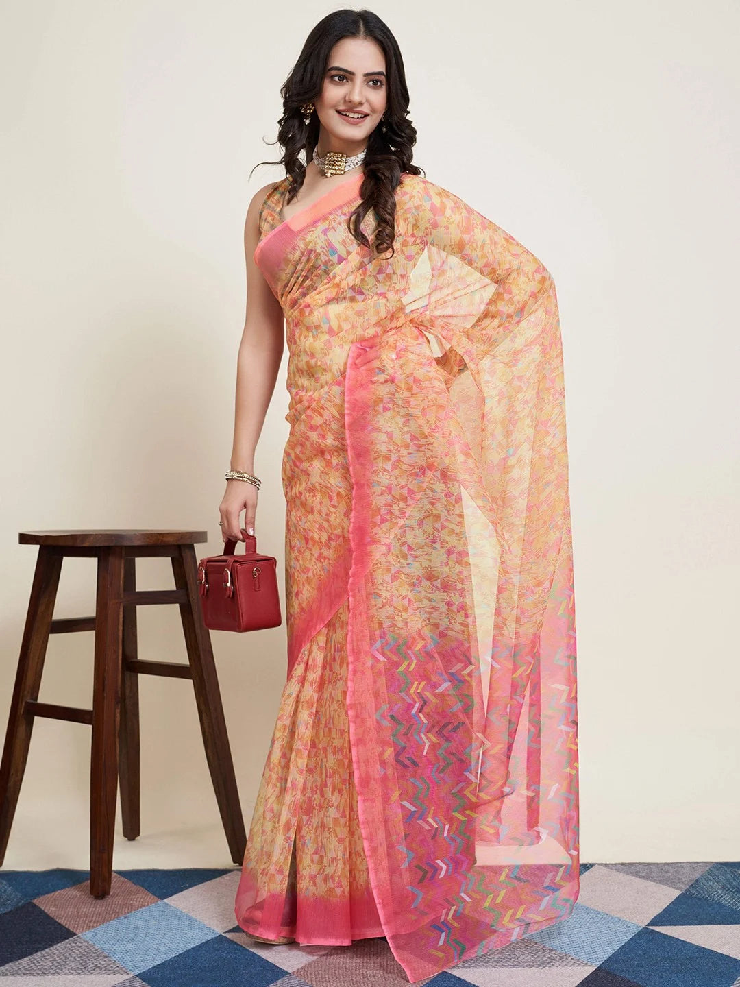 • The saree comes with an unstitched blouse piece, The blouse worn by the model might be for modelling purpose only. Check the image of the blouse piece to understand how the actual blouse piece looks like.